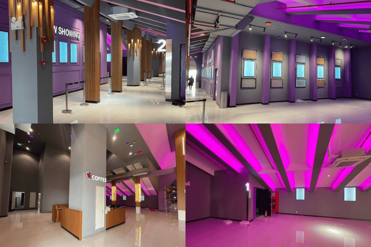 Từ một mặt bằng trống ban đầu, công trình đã được hoàn thiện thành một không gian rạp chiếu phim đồng bộ, rõ trải nghiệm và sẵn sàng đưa vào khai thác thực tế.