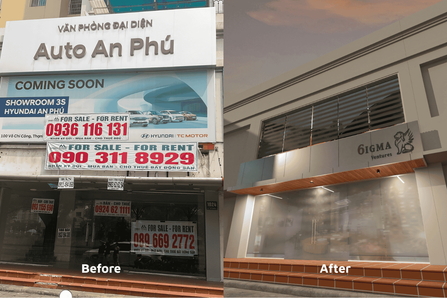 Ảnh 3: Sảnh văn phòng trước và sau thi công