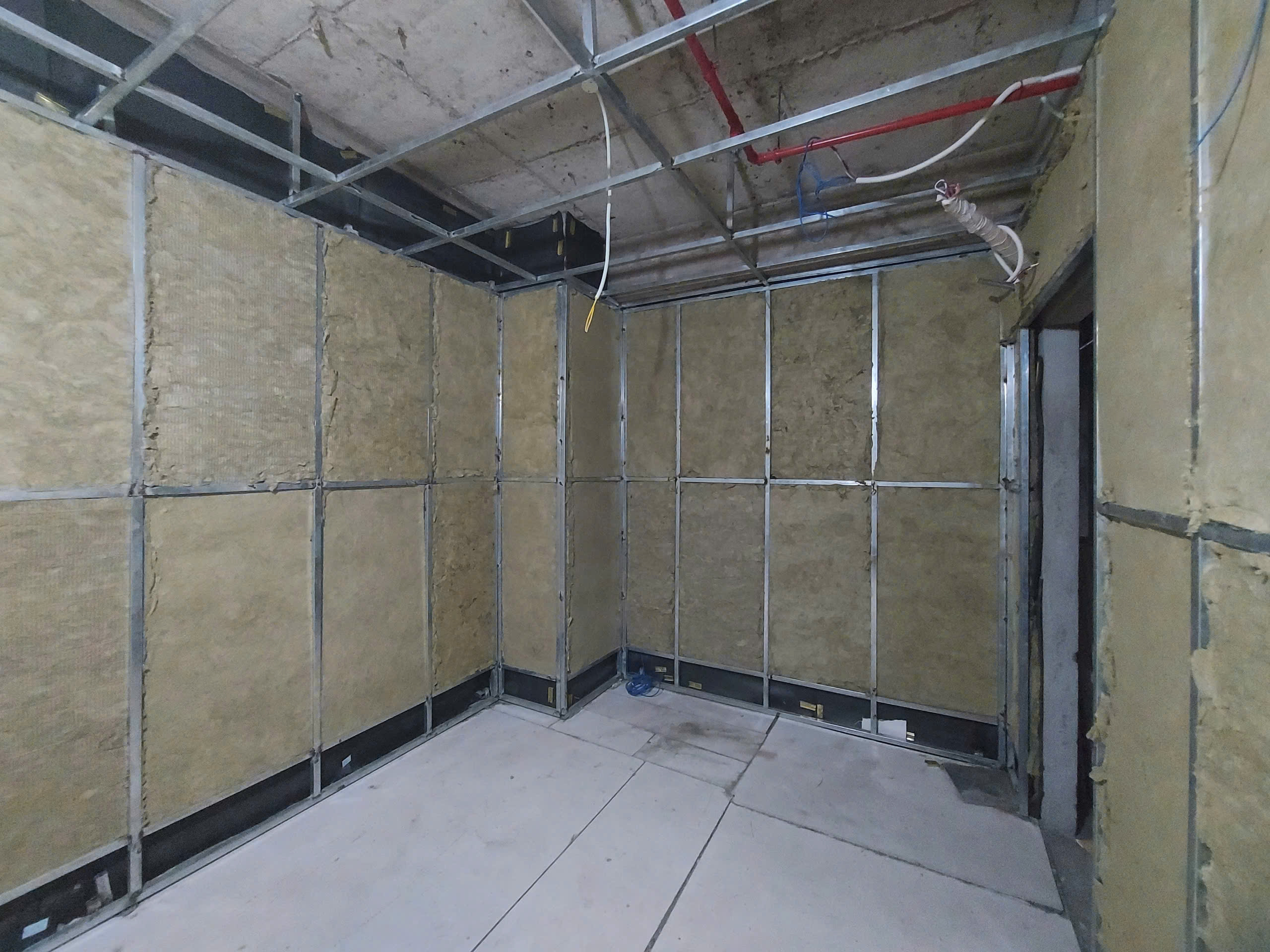 - Sàn và chân tường không được xử lý kỹ thuật: Âm thanh có thể lan truyền qua sàn bê tông, đặc biệt là các công trình nhiều tầng. Nếu không xử lý bằng lớp đệm cách âm hoặc sàn nổi, âm thanh sẽ va đập và dễ dàng truyền đi các tầng.