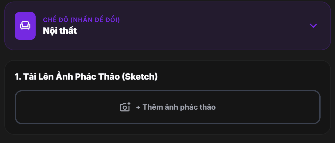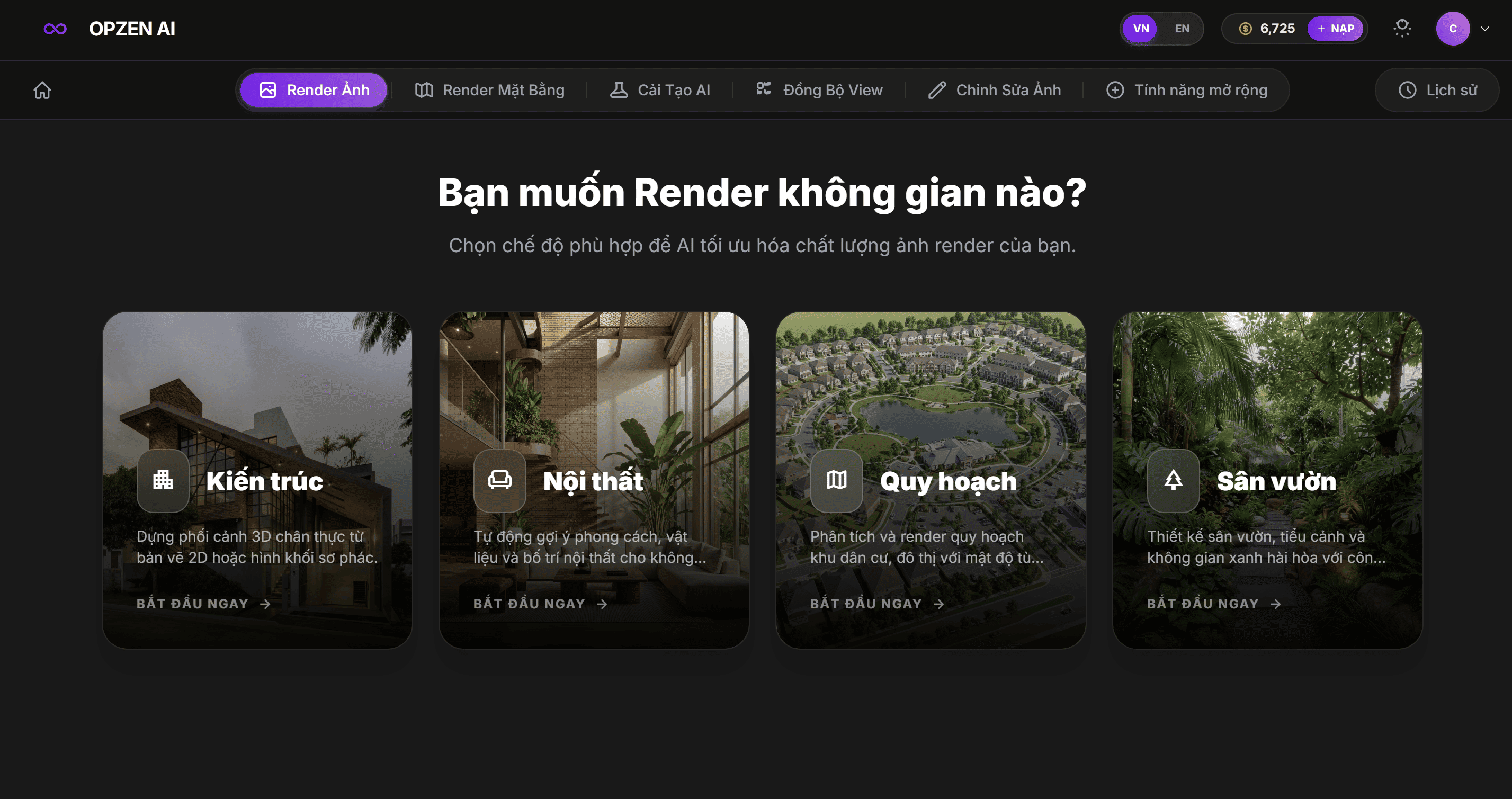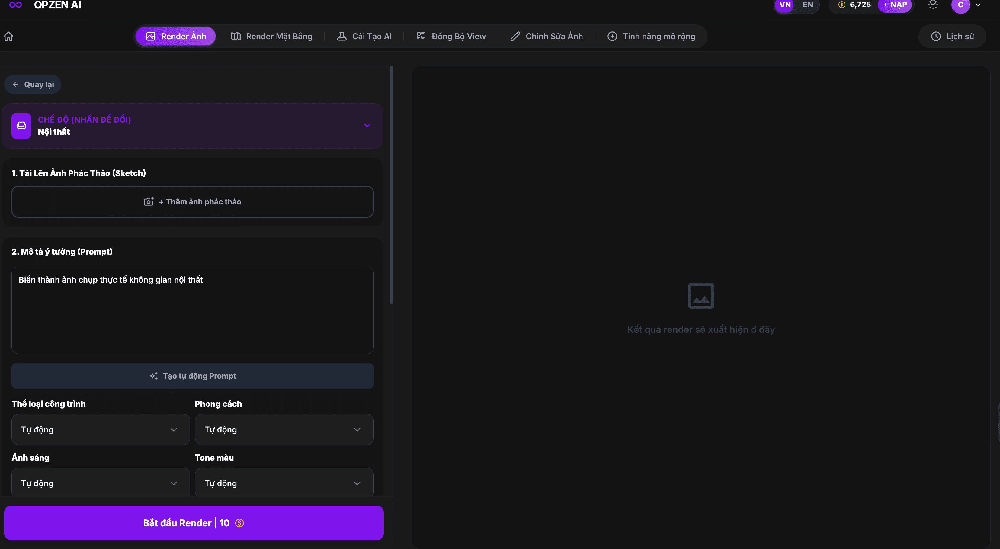 Bước 2: Vào mục Render ảnh – Trên giao diện AI, chọn công cụ chuyên biệt dành cho Nội thất.