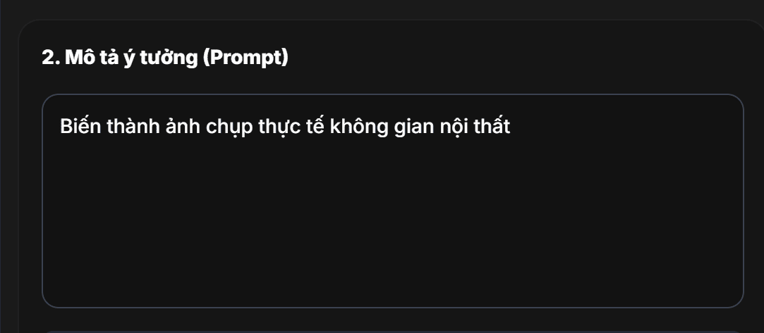 Bước 4: Mô tả ý tưởng (nhập vài dòng mô tả mong muốn của bạn, ví dụ: "Phòng khách hiện đại, ấm cúng, nhiều cây xanh").