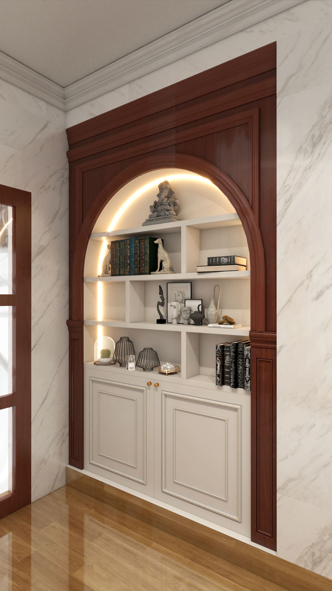 1. Hệ tủ trang trí vòm cong