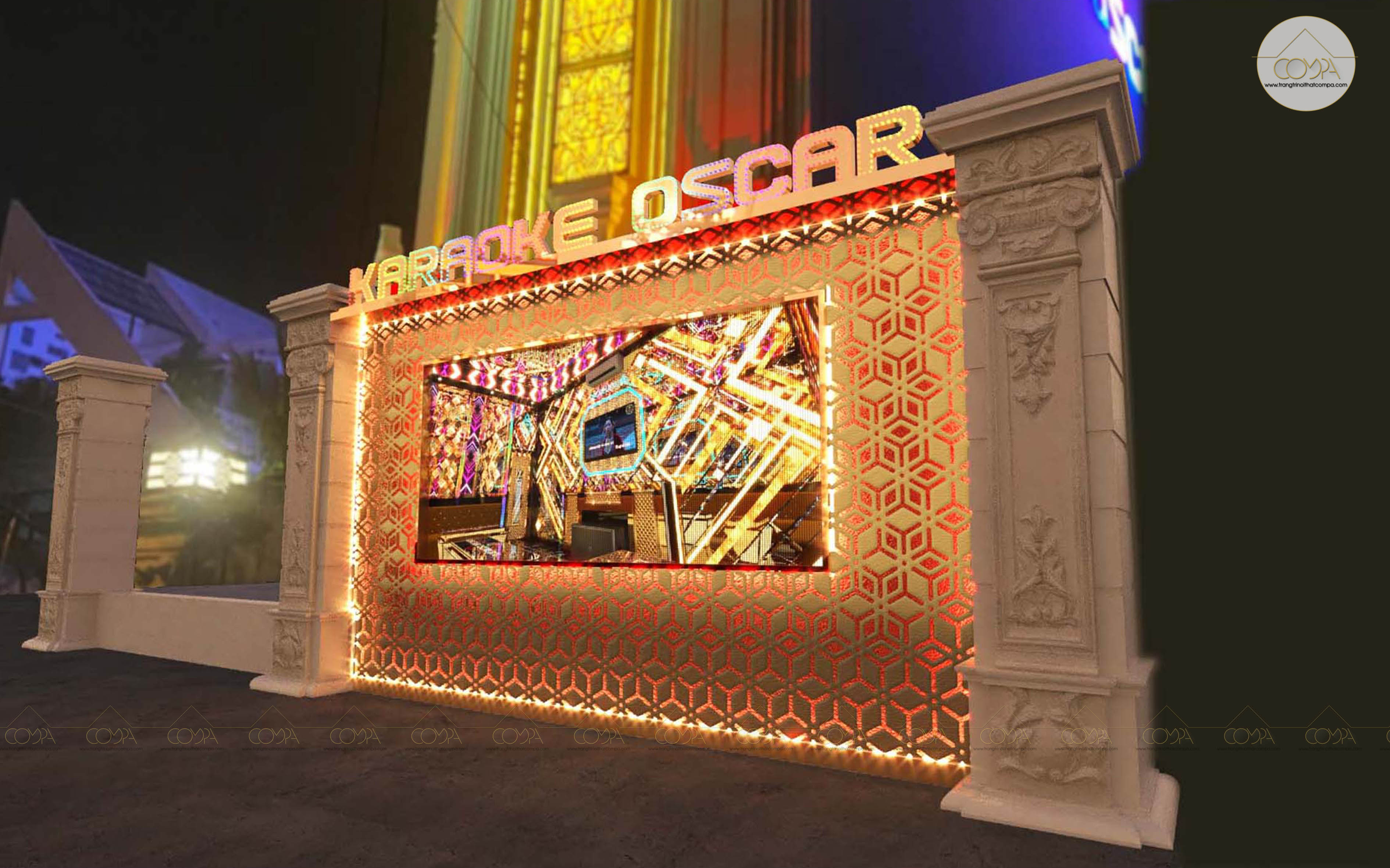 Đây là một trong những sản phẩm mà Compa Decor thực hiện dựa trên những tư vấn của Compa và yêu cầu của chủ đầu tư. Với Compa, quán Karaoke không chỉ là "quán hát" mà còn là một sân khấu, nơi tạo ra những dấu ấn, ấn tượng hoàn hảo đối với khách hàng. Hãy liên hệ với Compa khi bạn muốn hiện thực hóa bất kì ý tưởng nào.